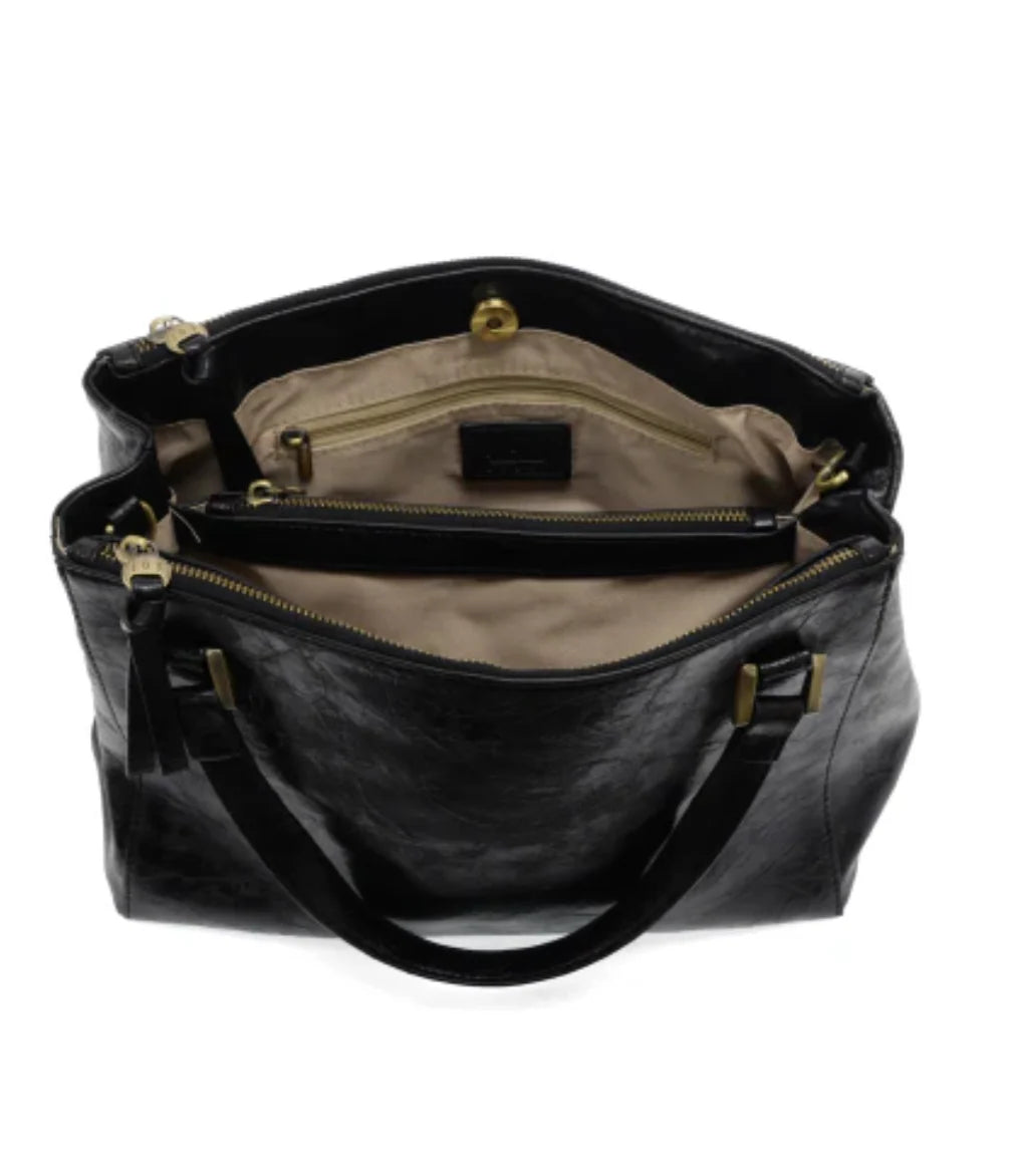 This Is The Fashionable, Modern Bag You Need To Get Organized! Three Separate Zipper Compartments Plus Two Open Compartments Will Help You Store Everything You Could Need Daily. Carry This Beautiful Satchel Tote Crafted In Our New Distressed Vegan Leather By The Handles Or Use The Removable Shoulder Strap To Wear As A Crossbody.